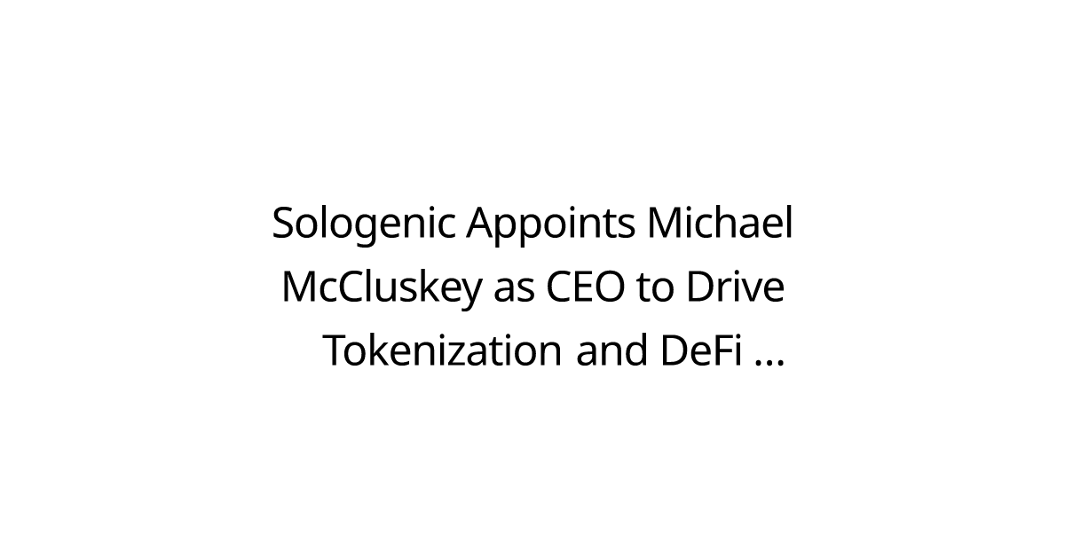 Sologenic Appoints Michael McCluskey as CEO to Drive Tokenization and DeFi Growth